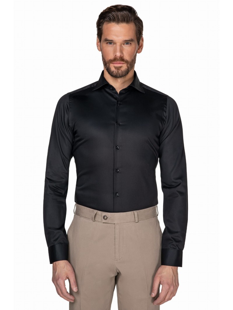 Čierna saténová košeľa s jednoduchým gombíkom